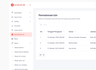ACELEN HR membantu UMKM mengelola karyawan dengan lebih mudah dan efisien tanpa harus menggunakan banyak aplikasi atau dokumen manual. Sistem ini mempermudah pencatatan absensi, pengajuan cuti, hingga penggajian dalam satu dashboard yang terpusat. Dengan begitu, pemilik bisnis dapat menghemat waktu dan fokus pada pertumbuhan usaha.